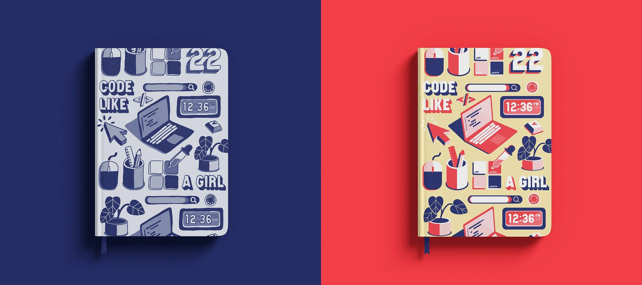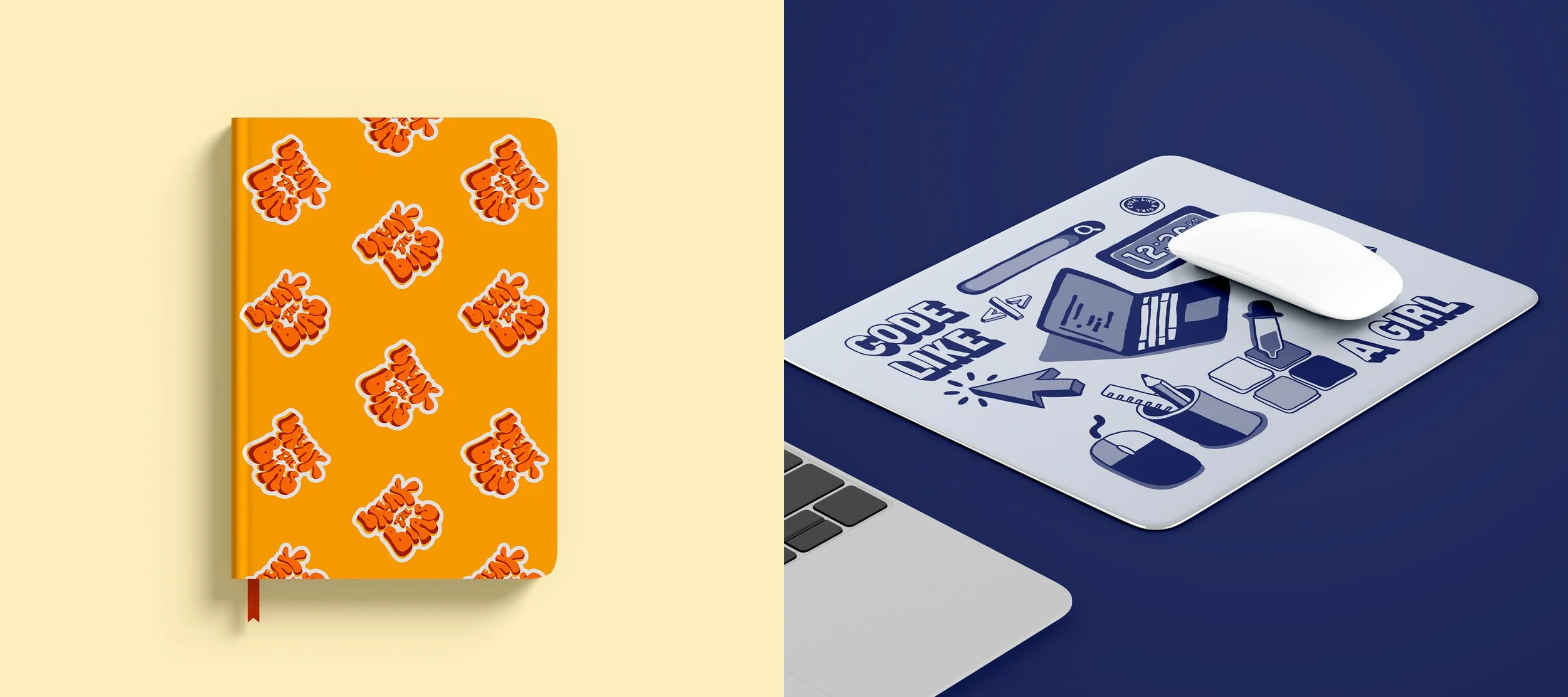 A collection of illustrations and designs created for Code Like A Girl’s very first merch drop. We launched a range in line with the International Women’s Day theme #breakthebias. We made t-shirts, notebooks, stickers and mousepads!