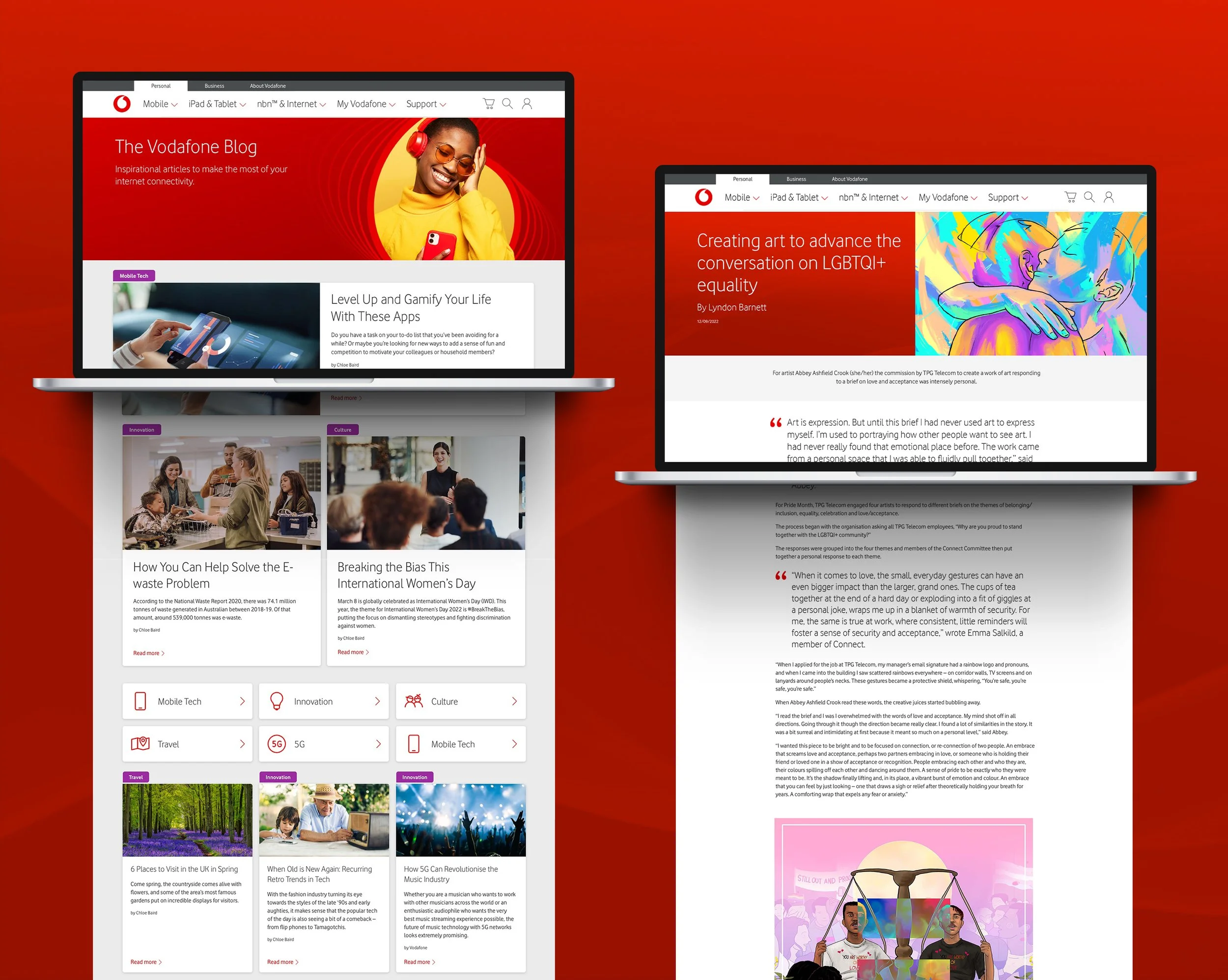 I worked on the wireframes and images to migrate Vodafone’s Blog from the legacy platform to their in-house Content Management System (below). In the early days of the migration, we already saw SEO traffic increase by +19% and page views increase by +30%. We transformed the blog into a digital asset that drives engagement, thought-leadership and sales.